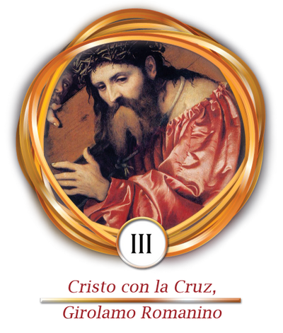 Jesús avanza cansado y débil, y de repente, su mirada encuentra el rostro de su madre, María. Ella lo abraza en silencio pues su corazón está inundado de dolor.